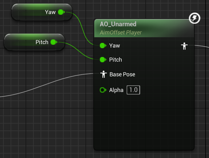 Pitch와 Yaw는 캐릭터 에임 오프셋에 사용하였다.