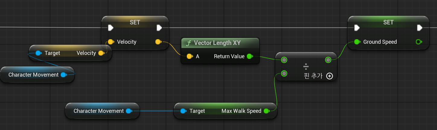벡터 길이로 속도를 구한 뒤 캐릭터의 최대 걷기 속도로 나누어 0~1사이의 값으로 정규화해준 값이다.