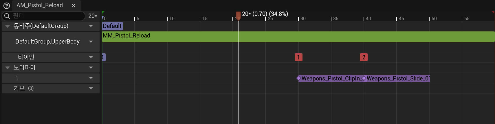 노티파이에서 사운드를 재생하고, 상체와 하체의 애니메이션을 다르게 재생하기 위해 슬롯을 UpperBody로 설정한다.