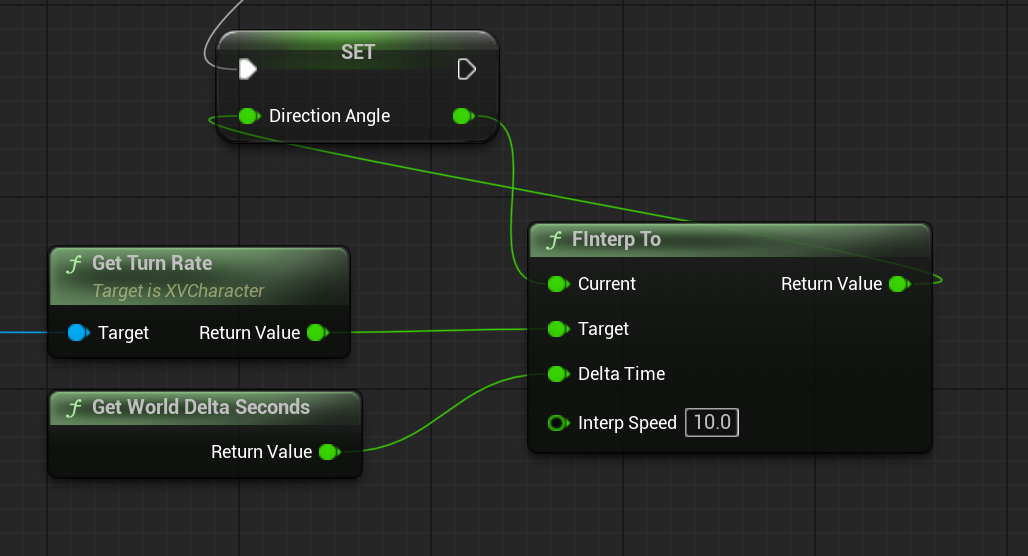 애님 블루프린트에서 이 값을 보간하여 저장한 뒤 BlendSpace와 연결하여 달릴 때 마우스의 회전에 따라 캐릭터의 기울기를 변화시켰다.