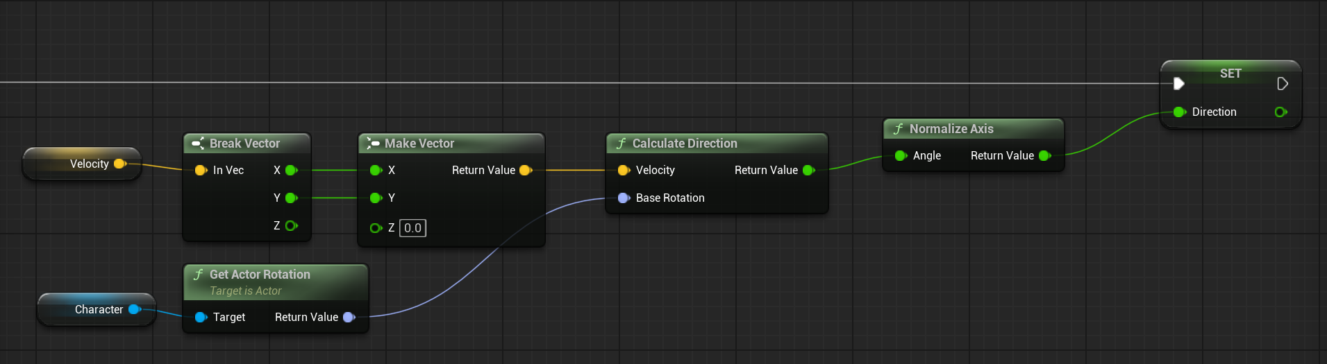 Direction은 캐릭터의 이동 방향과 회전 방향 간의 각도 차이를 의미한다.
