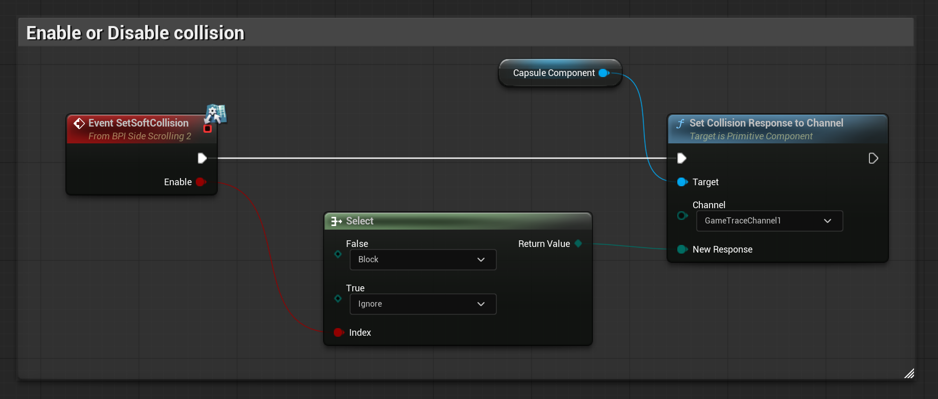 Set Soft Collision이란 이름의 함수를 추가한 후 입력에 Enable 변수 bool값을 추가한다.