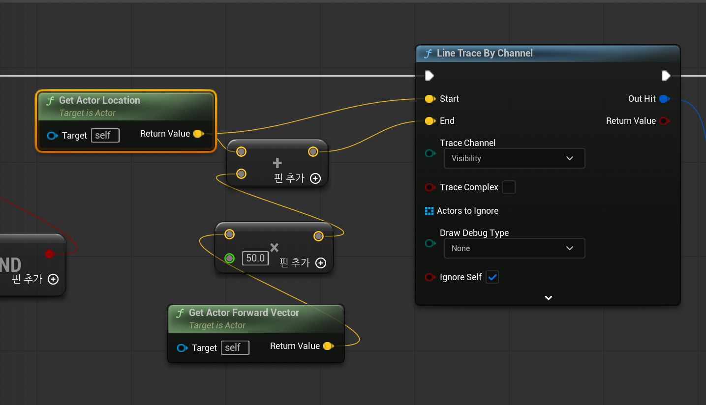 다음으로 Line Trace By Channel노드를 사용한다.