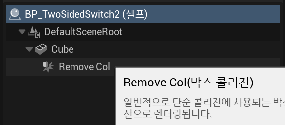 이제 새로운 블루프린트 클래스를 만들고 스태틱 메시와 박스 콜리전을 추가해준다.
