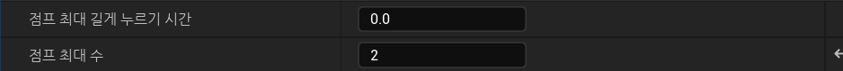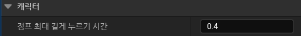 점프 최대 누르기 시간(Jump Max Hold Time)을 0보다 크게 설정해야 한다.
