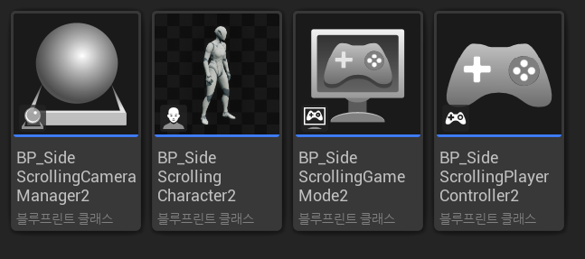 각각 플레이어 카메라 매니저, 캐릭터, 게임모드 베이스, 플레이어 컨트롤러 클래스를 상속받아 생성한다.