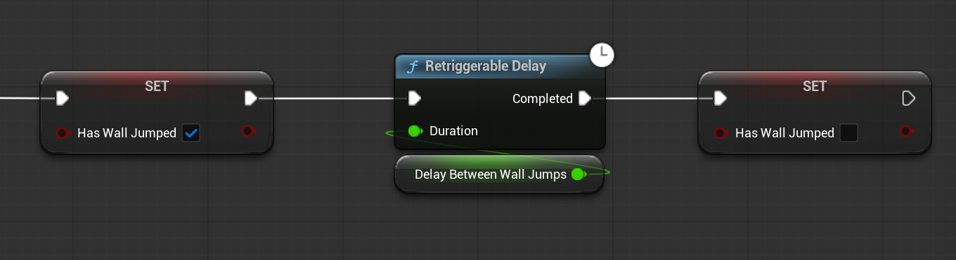 마지막은 벽 점프에 대한 변수를 설정하고, Retriggable Delay를 준다.