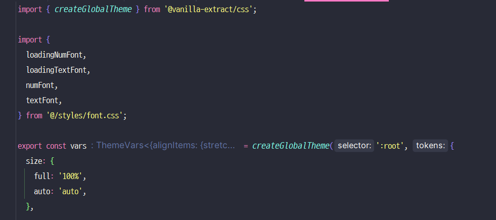 이렇게 적용된 폰트는, 공통 컴포넌트를 만들기 위해 필요한 요소들을 사전에 정의해놓는 vars.css.ts를 통해서 정리함으로 또한 사용이 가능하다.