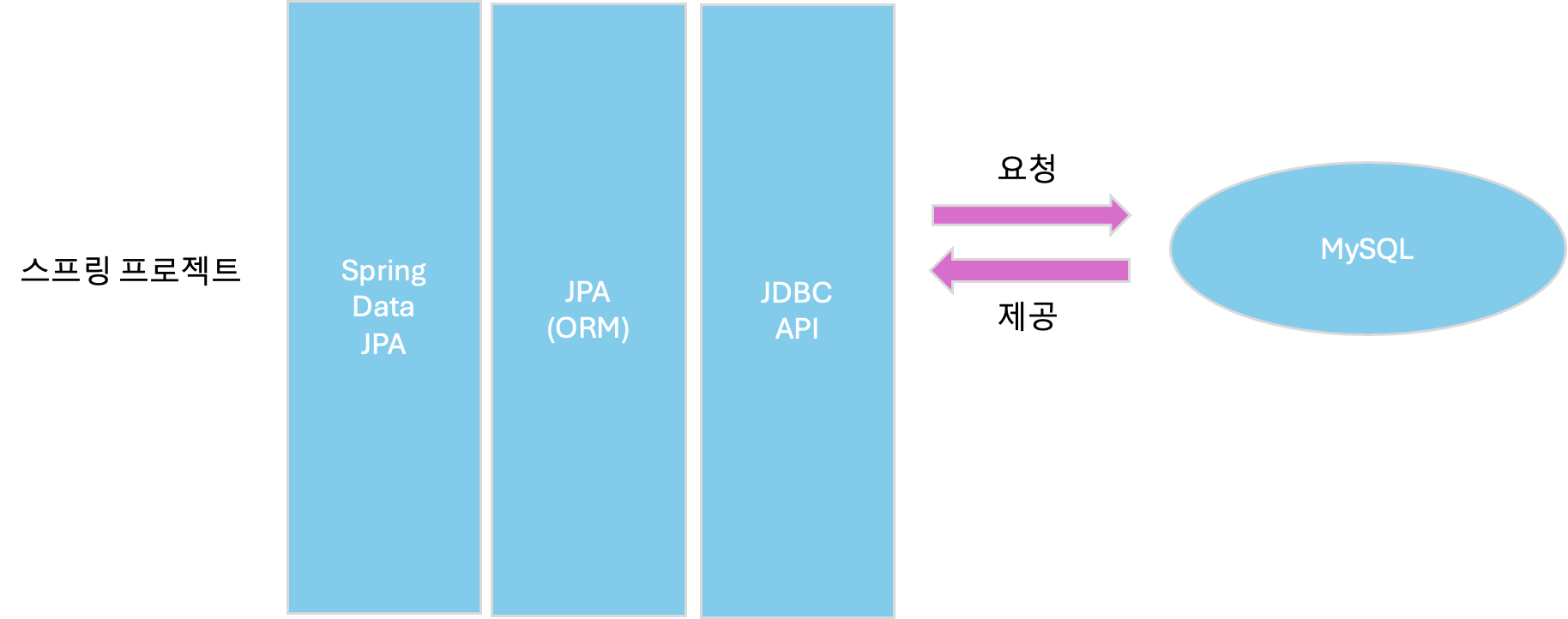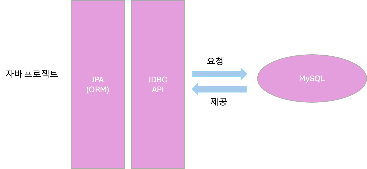 위 그림과 같이 JPA(+JDBC)가 자바와 mysql사이에서 데이터를 요청하고, 제공하며 mapping시켜주고 있네요.