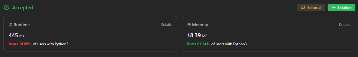 - 중복방문에 대한 처리는 visited() 세트를 만들어서 구별했는데, 강의에서 했던 방식처럼 딕셔너리의 값을 대조하는 방법도 똑같은 시간복잡도를 가지므로 어느 방식을 사용해도 될 것 같다.