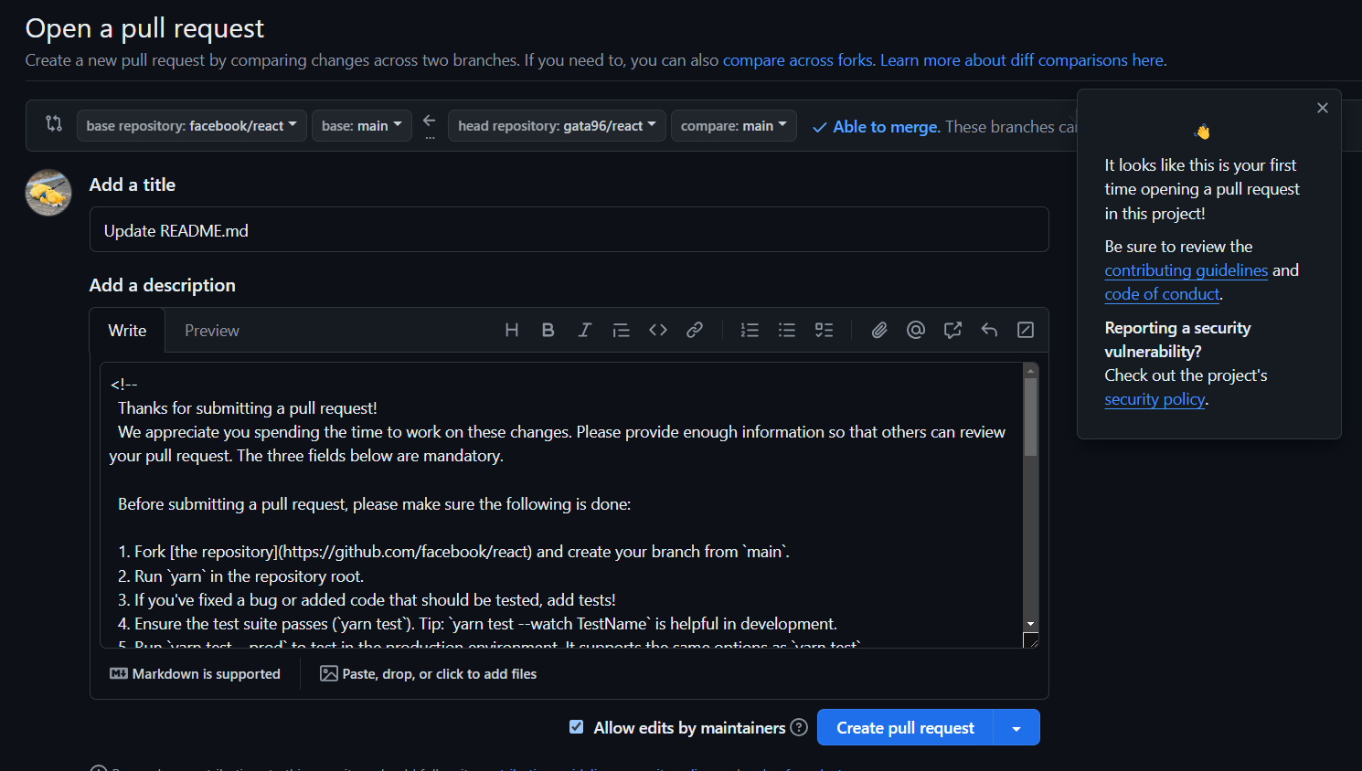 PR을 받은 원본 저장소 관리자는 코드 변경 내역을 확인하고 merge 여부를 결정한다.