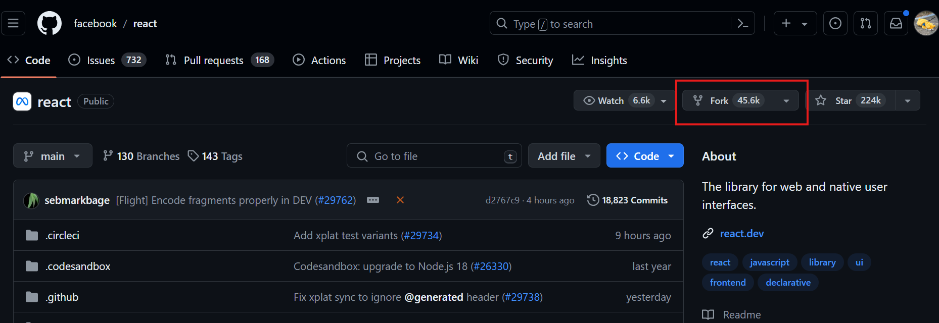 타켓 프로젝트 저장소를 자신의 저장소로 Fork 한다.