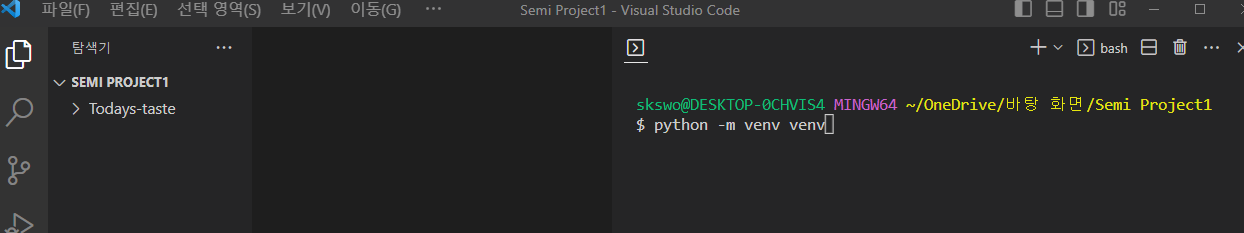 2. clone된 폴더에 가상환경(venv)이 없기 때문에 만들어야 한다.