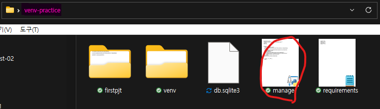 4개의 파일들이 장고와 얽혀있다는 뜻. 그래서 글로벌 환경에서 개발을 하면 문제가 발생하므로 가상환경을 만들어야하는 것이 그 이유다.