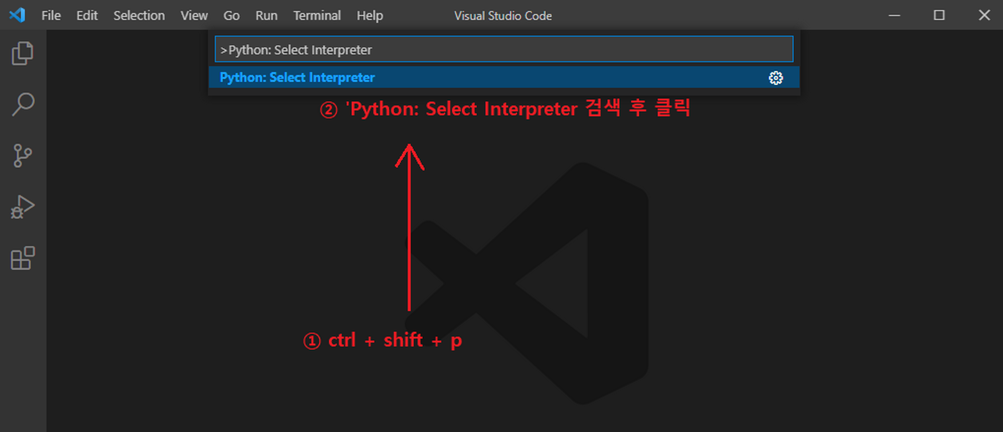 ctrl + shift + p => interpreter