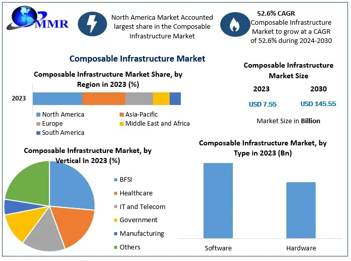 April 3, 2025 — The global composable infrastructure market, valued at USD 7.55 billion in 2023, is projected to surge to USD 145.55 billion by 2030, reflecting a remarkable Compound Annual Growth Rate (CAGR) of 52.60% during the forecast period.