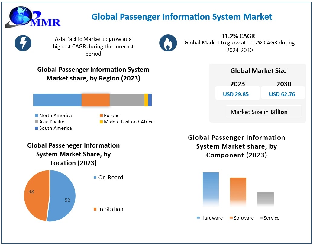 The global Passenger Information System (PIS) market is experiencing significant growth, driven by technological advancements, increasing urbanization, and the rising demand for real-time transit information. Valued at USD 29.85 billion in 2023, the market is projected to reach USD 62.76 billion by 2030, growing at a CAGR of 11.2% during the forecast period . This comprehensive analysis explores the market's dynamics, segmentation, regional insights, competitive landscape, and future outlook.
