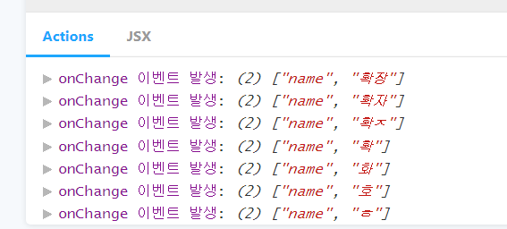 .addWithJSX('onChange 예제', ()=> <Input name="name" onChange={action('onChange 이벤트 발생')} />)