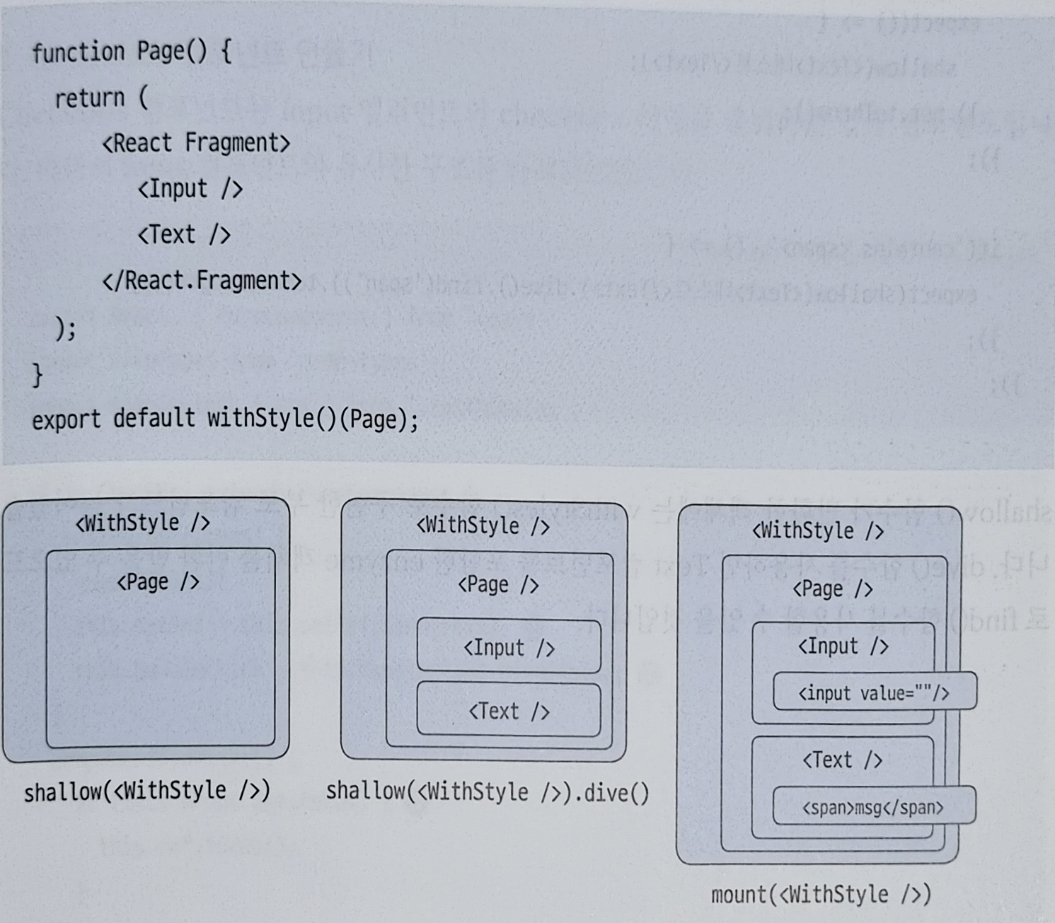 shallow,dive,mount 함수로 출력한 컴포넌트