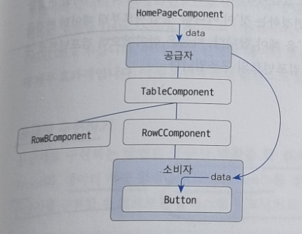 예를 들어 HomePageComponent에서 RowAComponent로 바로 데이터를 보내고자 할때 프로퍼티의 경우 Home > Table > RowA 과정으로 데이터가 전송 됩니다. 만약 중간에 해당 프로퍼티를 사용하지 않는다면? 전달 과정에 누락된다면? 올바르게 데이터가 전송되지 못합니다.