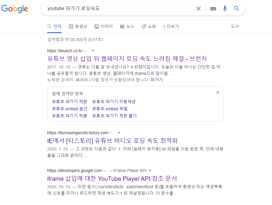 유튜브에 영상을 iframe으로 삽입한뒤로 부터 로딩속도가 말도 안되게 길어졌습니다 ㅠㅠ..