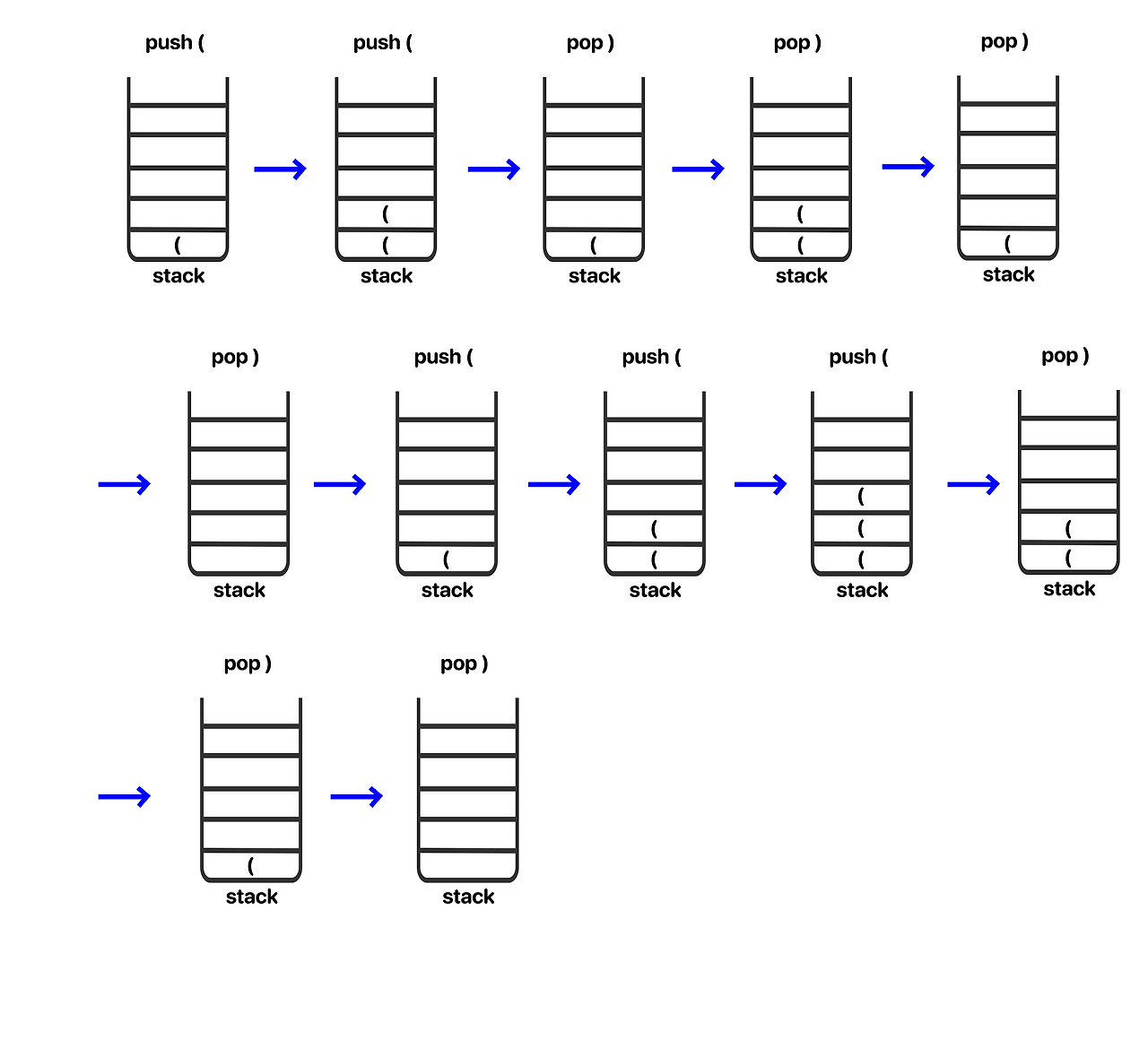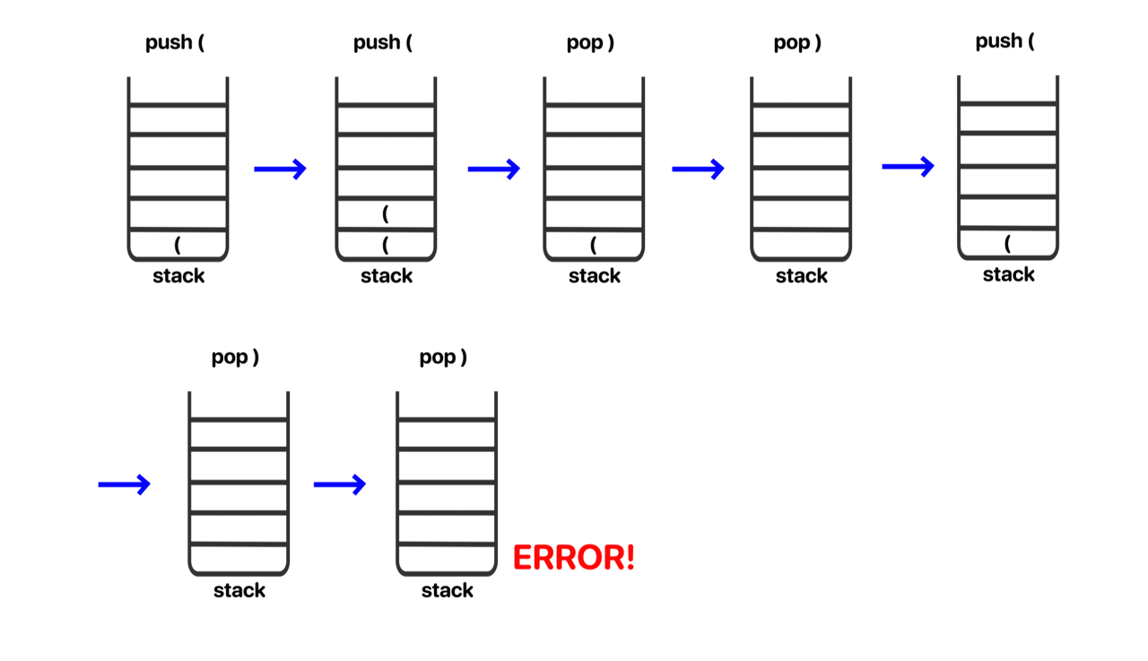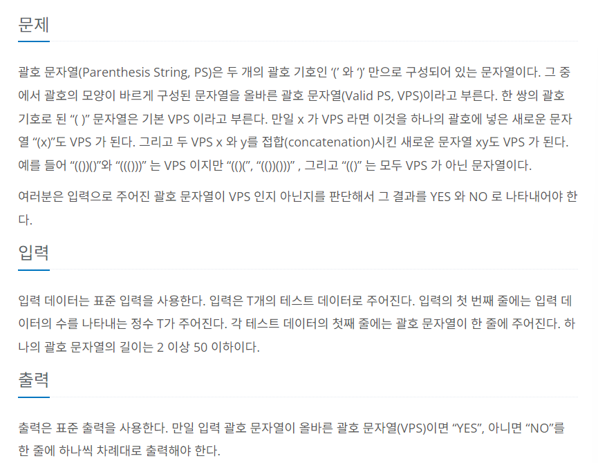 문제를 해석해보면 여는 괄호 '(' 가 있으면 반드시 ')'로 짝이 맞아야 VPS 조건이 된다는 것임