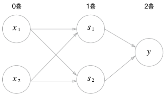 가중치 갖는 층 수만 셈 => 위에껀 2층 퍼셉트론임