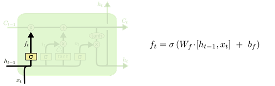 ① forget gate (f) : 과거 정보를 잊기 위한 게이트