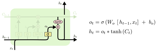 ② h(t−1)와 x(t)를 받아 sigmoid layer를 통해 O(t)를 계산