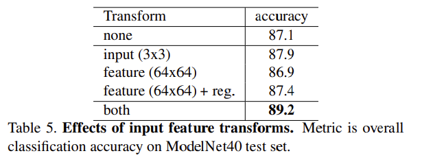 positive effects of our input and feature transformations (for alignment)