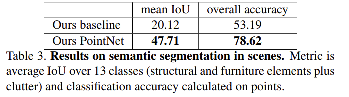 - Metric : mean IoU(%) on point