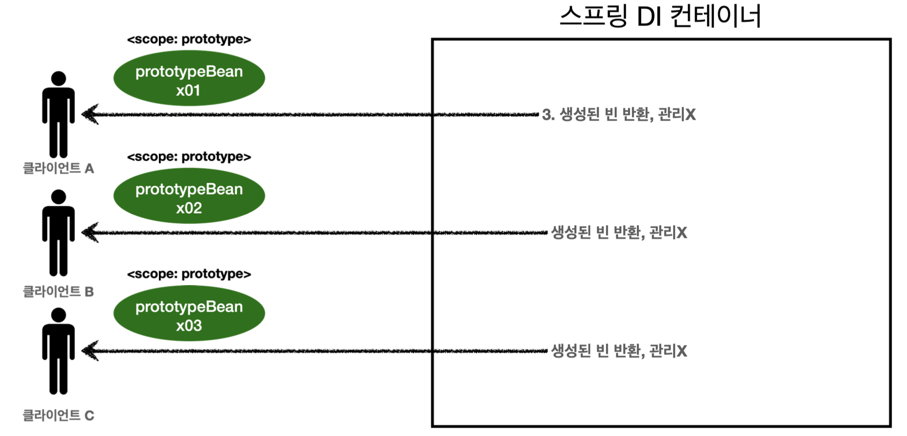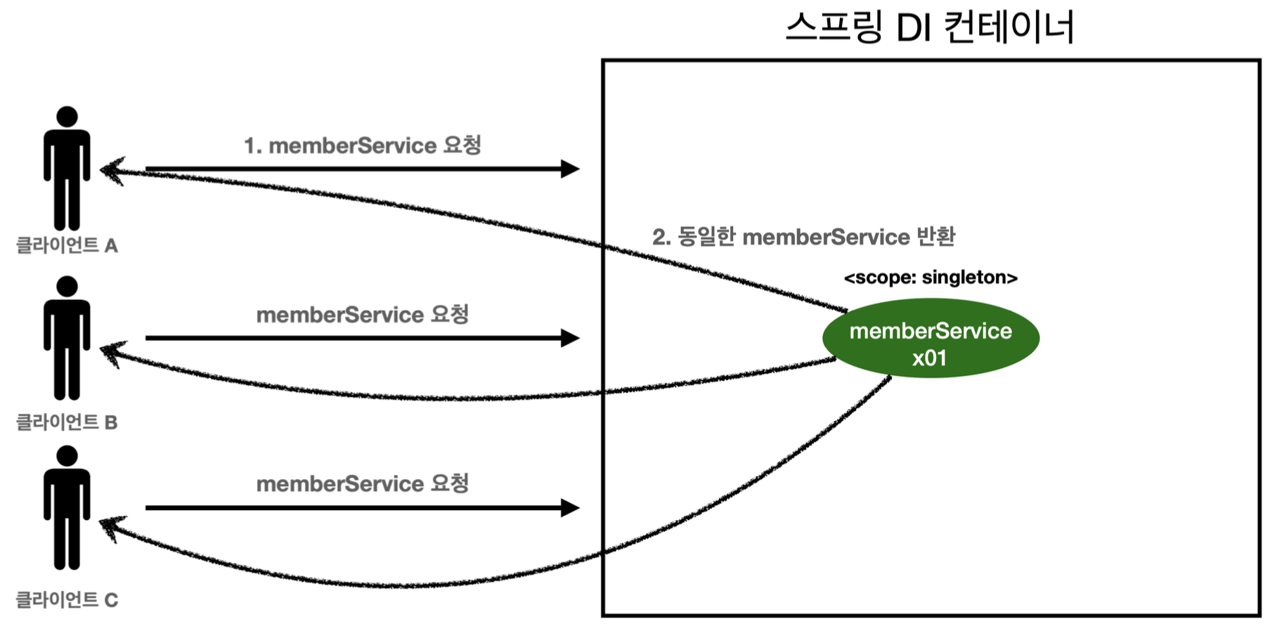 클라이언트 A, B, C는 같은 빈을 공유한다.