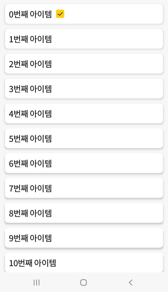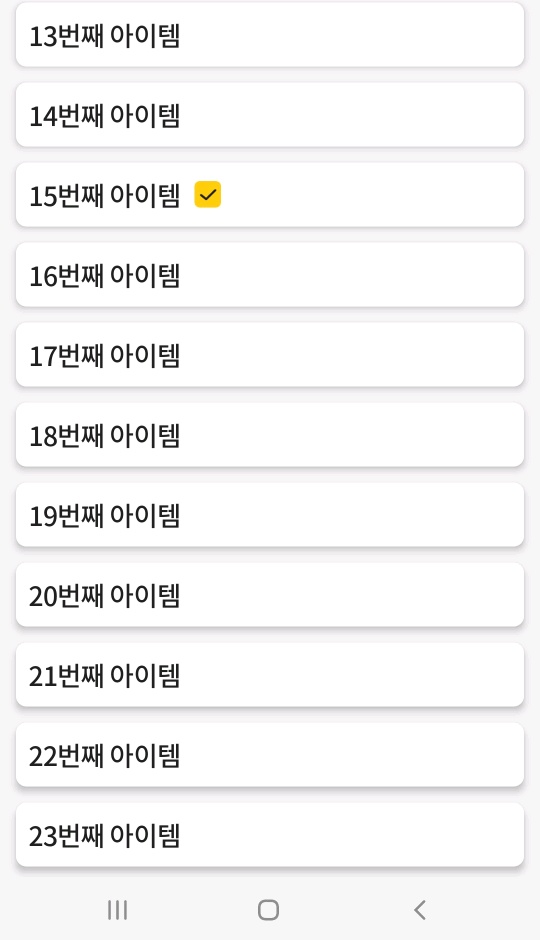 내가 클릭한 것은 3번째 아이템인데 스크롤 하고 보니 클릭하지도 않은 15번째 아이템이 체크되어 있고 다시 스크롤해서 돌아와보니 내가 클릭한 3번째 아이템에는 체크이미지가 사라져 있다. 왜 이런 현상이 생기는걸까?