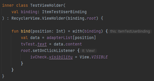 binding.root.setOnClickListener { // 아래에서 수정 예정