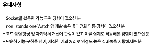 그런데 우대사항에 한국에서 잘 찾지 않는 워치 앱 경험이 있어, 이전 회사 경험을 버리기 싫어(후술) 반신반의하면서 하루만에 자소서를 작성하고 지원했다.