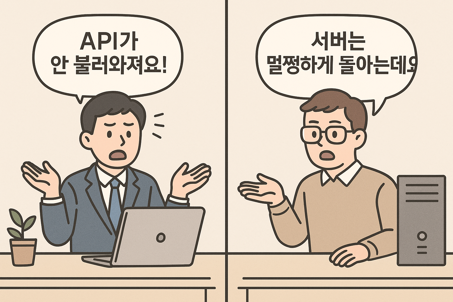 프론트는 “API가 안 불러와져요!”라고 외치고, 백엔드는 “서버는 멀쩡하게 돌아가는데요?”라고 답합니다.