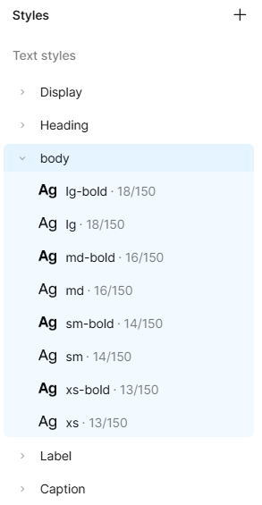 그렇기에 디자이너는 폰트 사이즈나 행간, 자간과 같은 값은 배리어블로 정의해뒀더라도, 이를 다시 스타일로 정의하는 작업을 진행하는 것입니다.