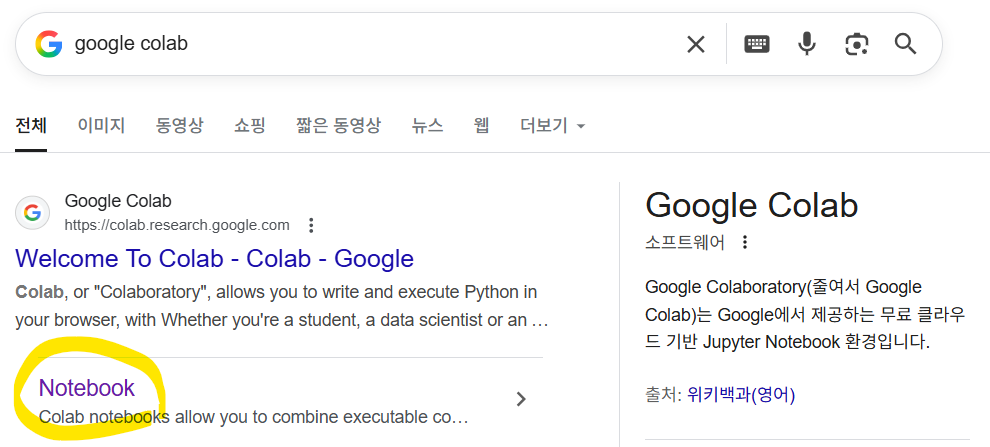 구글에 Google Colab 검색