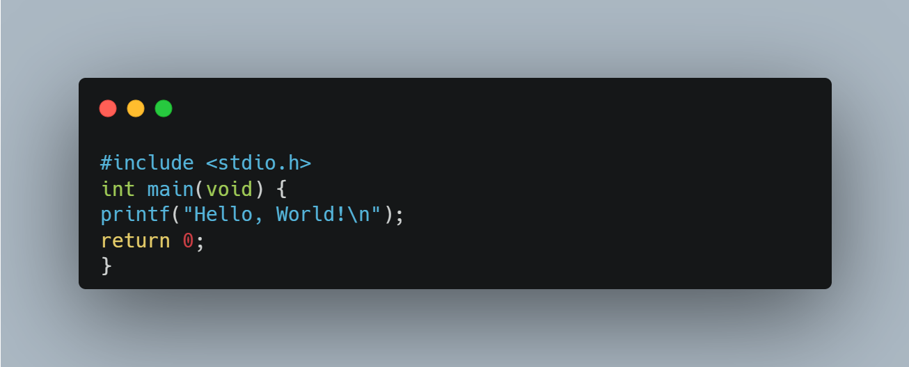 #include <stdio.h> → 표준 입출력 라이브러리를 불러옴int main(void) → 프로그램의 시작점을 정의함return 0; → 프로그램이 정상 종료되었음을 운영체제에 알려줌Python