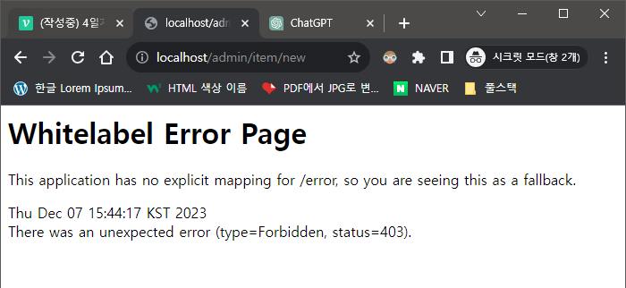 .failureUrl("/members/login/error")) // ๋ก๊ทธ์ธ ์๋ฌ ํ์ด์ง