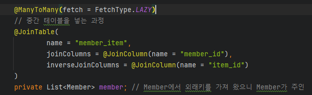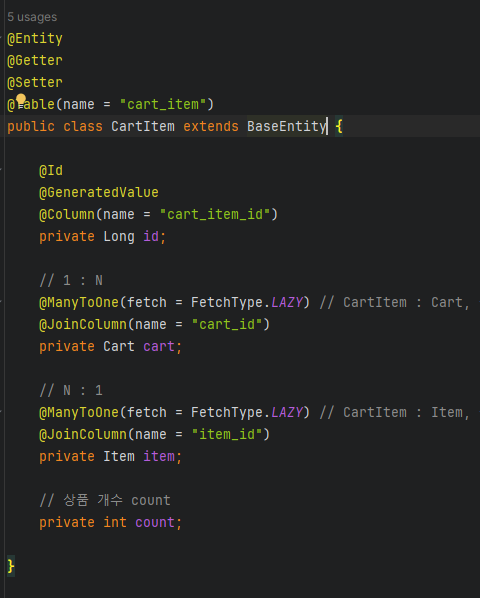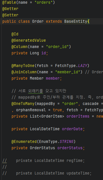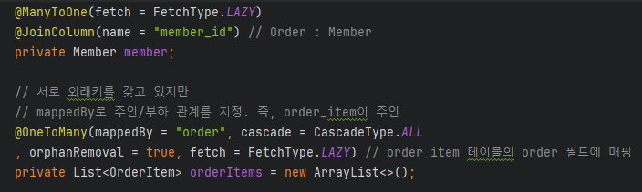 @OneToMany(mappedBy = "order", cascade = CascadeType.ALL) // order_item 테이블의 order 필드에 매핑