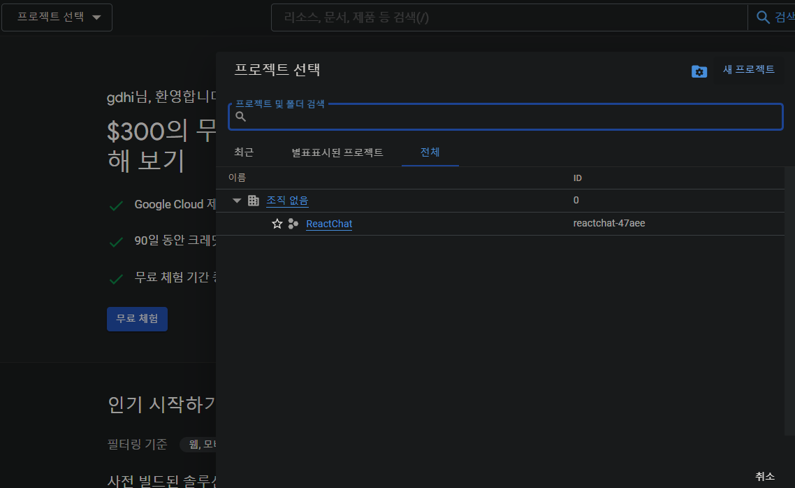 ๐ ํ๋ก์ ํธ ์ ํ > ์ฐ์ธก ์๋จ ์ ํ๋ก์ ํธ ํด๋ฆญ
