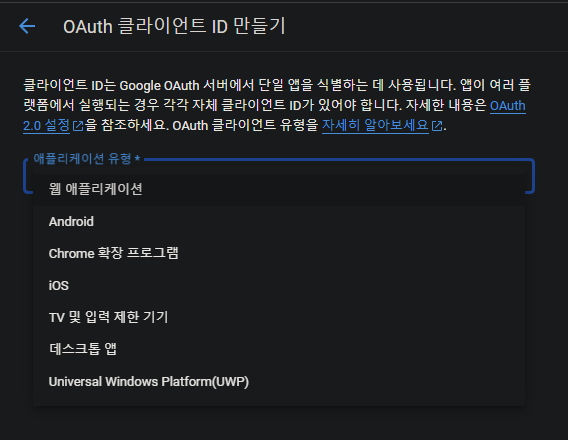 ๐ OAuth ํด๋ผ์ด์ธํธ ID ๋ง๋ค๊ธฐ