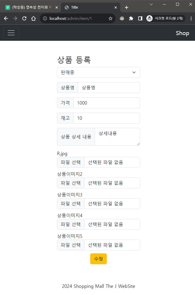 4. ์ํ ์์ ํ์ด์ง์์ ์์ ํ ํ "์์ " (POST ์์ฒญ)