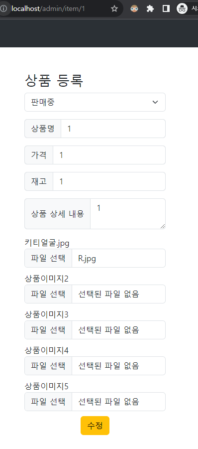 // ์ํ ๋ฑ๋ก๊ณผ update๋ง ๋ค๋ฅด๋ค. ์ํฐํฐ ๋นผ์ ๋ณ๊ฒฝ ๊ฐ์งํ๊ณ ๋ฐ๊ฟ