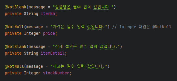 @NotNull(message = "์ฌ๊ณ ๋ ํ์ ์