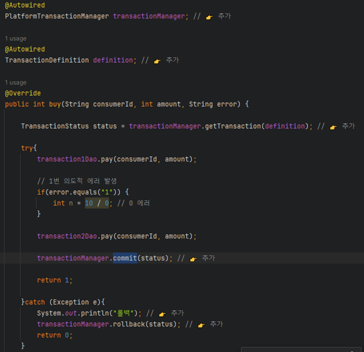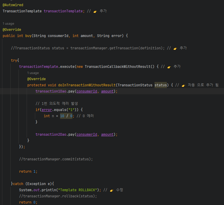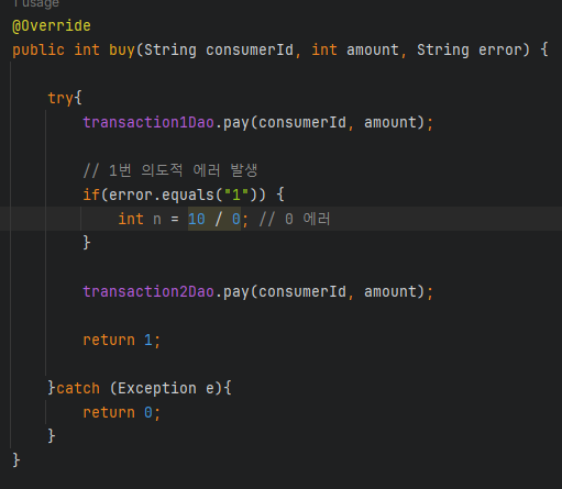 👉 BuyAndLogService 에러, 롤백 1개 출력