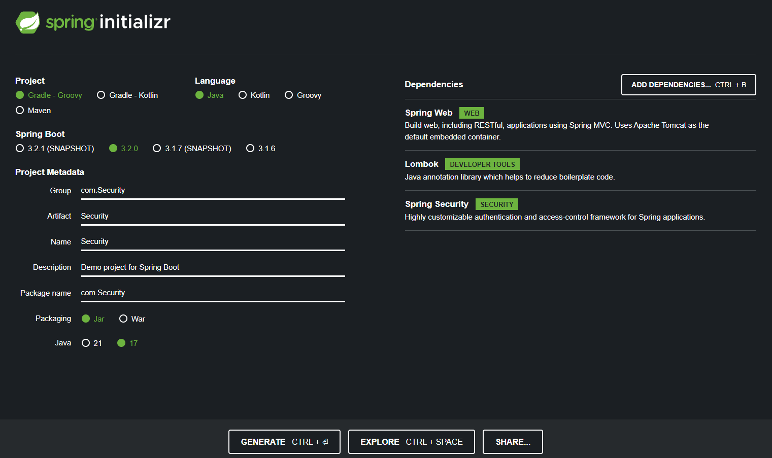 implementation 'org.springframework.boot:spring-boot-starter-security'