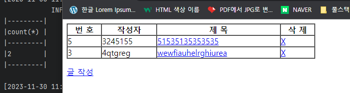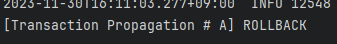 👉 롤백 2개 출력, 데이터는 당연히 들어가지 않았다