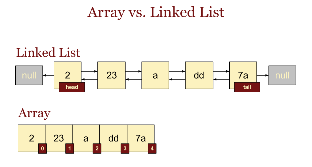 위 그림처럼 ArrayList는 index가 있고, LinkdedList는 각 원소마다 앞,뒤 원소의 위치값을 가짐